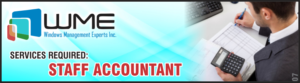 We are looking for a Staff Accountant to manage general accounting and financial processes at Windows Management Experts, Inc. (WME) You’ll be responsible for all daily accounting